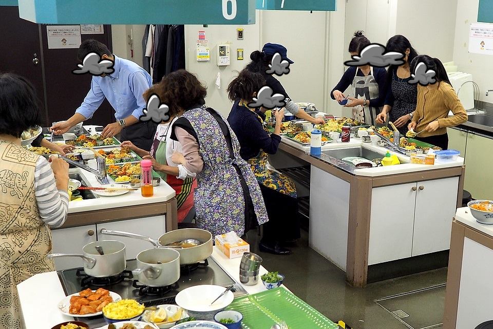 先日(19日)の晩に、赤羽の文化センター調理室をお借りして食事会を開催しました。
