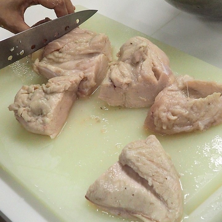 鶏肉はいったん火を通してからの調理です。