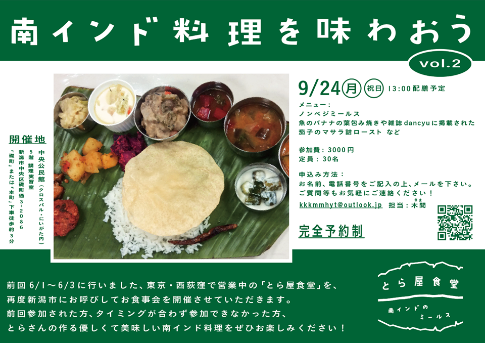 9月24日「南インド料理を味わおうvol.2@クロスパルにいがた」