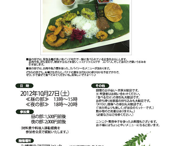 10月27日の土曜日に北九州市の公共施設をお借りして、南インド料理食事会を開催してきました。開催して来たといっても、多くの方々のご協力があって成り立った食事会。ご協力いただきました方々、本当に有難うご...